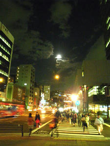 帰り道、ビル街の上にぽっかり浮かぶ月が奇麗でした。